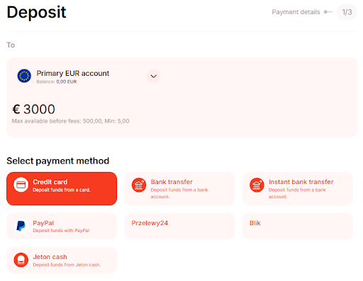Wpisz kwotę depozytu, z reguły musi to być co najmniej 50 PLN.